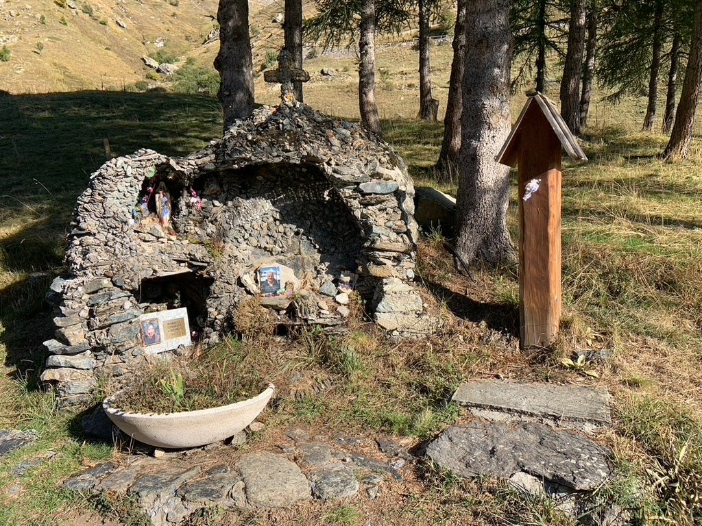You’re walking an Alpine trail, hours from any village, when you find it: a wooden cross wrapped in weathered ribbons. Or a tiny shrine built into a boulder, half-hidden by moss. Sometimes there’s a saint’s name carved into the stone. Sometimes there’s nothing Christian about it at all—just a pile of rocks, an offering of work gloves, a rusted ice axe leaning against granite.
